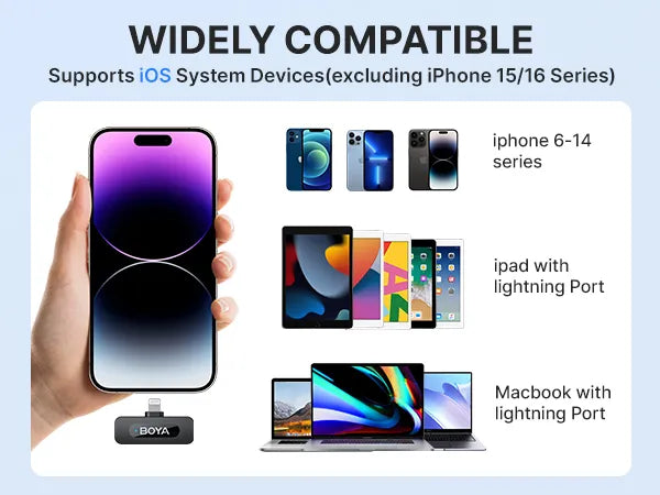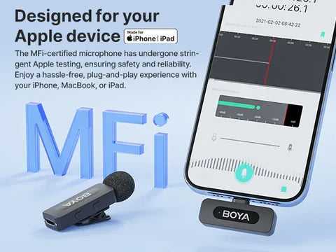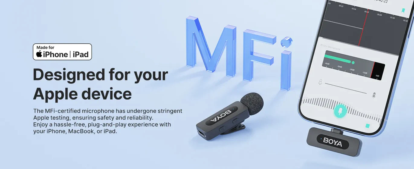 iOS Exclusive: The BY-V1 receiver is equipped with an MFi-certified Lightning connector, ensuring perfect, seamless compatibility with your iPhone or iPad. No adapters, no complicated Bluetooth pairing—it just works!