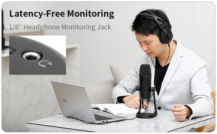 - 1/8" Headphone Monitoring Jack for Latency-Free Monitoring