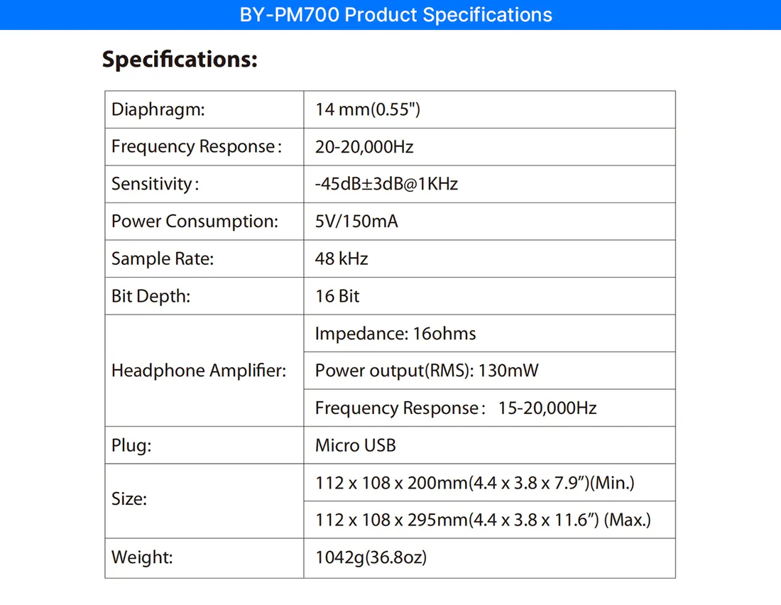 BY-PM700 USB Condenser Microphone